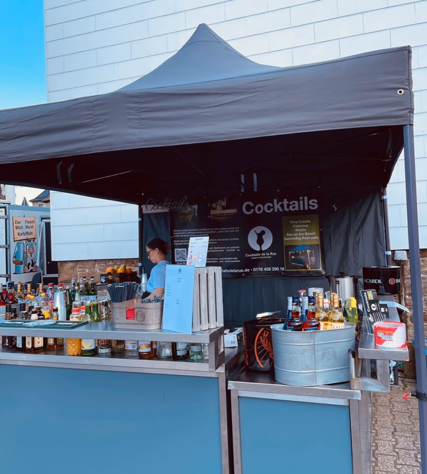 Kontaktiere uns und lass dich von der Flexibilität und dem Charme unserer mobilen Cocktailtheke überzeugen. Wenig Platz bedeutet nicht weniger Genuss – erlebe, wie wir auf kleiner Fläche großartige Cocktails zaubern!